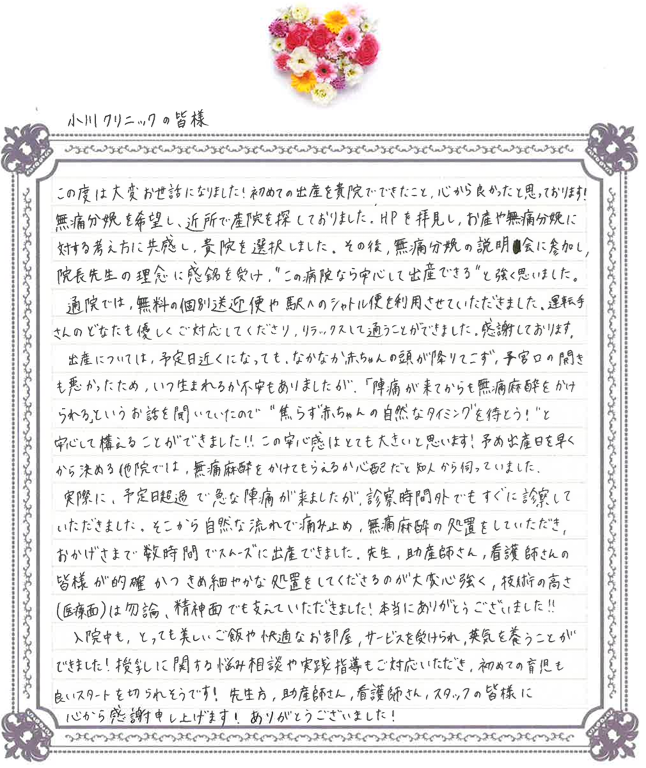 小川クリニックの皆様この度は大変お世話になりました! 初めての出産を貴院でできたこと、心から良かったと思っております!